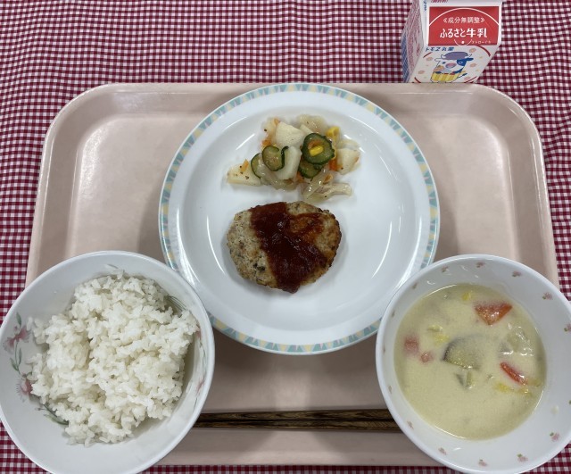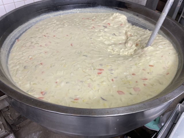 人気のメニューの組み合わせで、とてもよく食べてくれていました。もともとはシチューとの組み合わせでしたが、カロリーや作業工程の関係で米粉を使ったクリームスープに変更しています。
