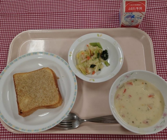 セサミトーストはあまりふなきぼでは出ていなかったメニューでしたが、ほどよい甘さでよく食べてくれていました。チャウダーとの相性もばっちりです。