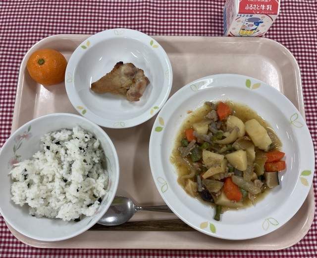 立ててくれたのが夏すぎだったので、今回はデザートが冷凍みかんになっていましたが、常温のみかんに変更して提供しています。他学年にも好評の献立でした。