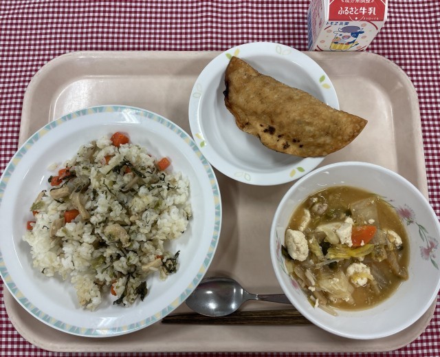 今日はリクエスト第4位にランクインしたジャンボぎょうざでした!完食大作戦をやっていることもあり、からっぽの食缶がたくさん!!嬉しい限りです。寒い日が続きますが、バランスよく食べて体調管理をしっかりしていきましょう!