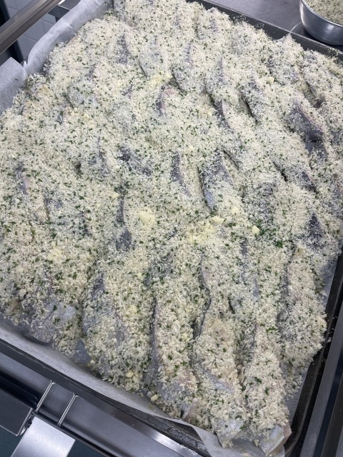 魚のチーズパン粉焼きは新メニューでした。魚に下味をつけ、パン粉と粉チーズ、パセリをまぶして焼いています。お休みも多かったですが、よく食べてくれました。