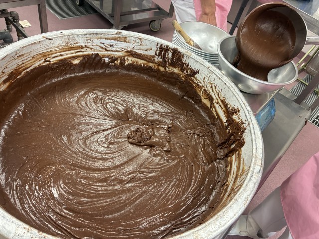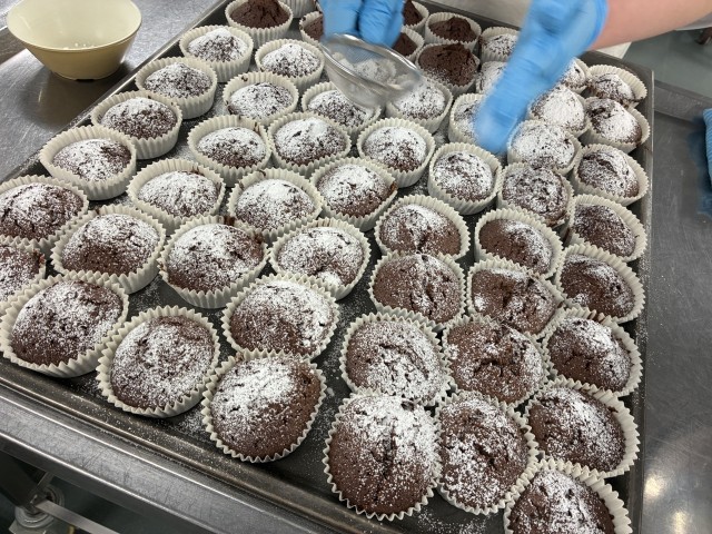 ブラウニーは焼いた後に粉砂糖をふりかけています。先日の雪のようできれいに仕上がりました。おかわりじゃんけんがいつもに増して白熱していました。