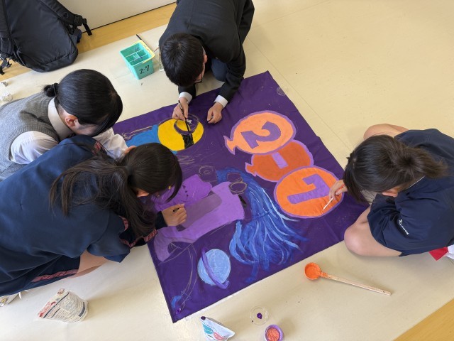 クラス旗の作成が始まってからまだ数日ですが、早くも完成間近です!