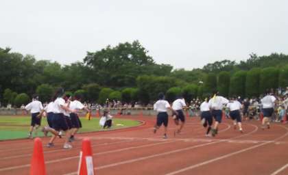 1年生クラスリレーです。結果は、1位4組、2位6組、3位5組、4位1組、5位2組、6位3組でした。