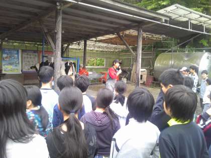 4箇所牧場に分かれて、午後の酪農体験が始まりました。
