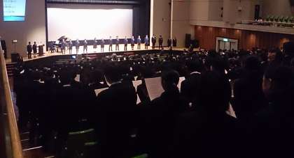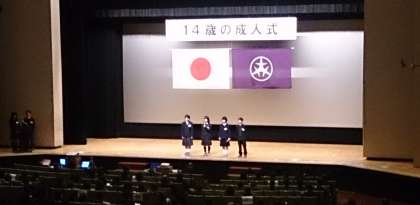 1月17日(土)に、第9回「14歳の成人式」が行われました。本校からは生徒会サミットメンバーである2年生2名が企画運営を行い、1年生21名が参加しました。