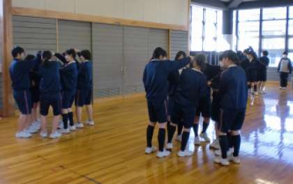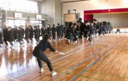 体育委員会の企画で、1月19日〜2月3日までの昼休みにレク大会を行っています。体育館では「大縄跳び」、格技室では「人間知恵の輪」で楽しんでいます。