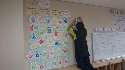 運動会が近づき、各クラスの掲示物にもその気合いが感じられます。