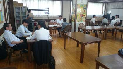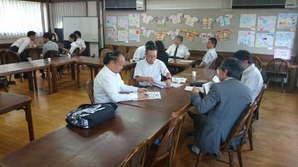 船橋希望学舎の4校(船橋希望中、船橋小、希望丘小、千歳丘小)の校長、副校長、教務主任、生活指導主任、研究主任、学び舎主任の先生方が集まり、今年度の学び舎としての研究の主題や方針を話し合いました。(副校長)