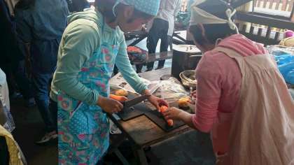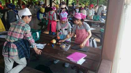 いよいよカレー作りが始まりました。(副校長)