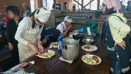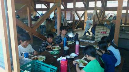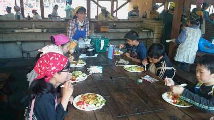 だんだん出来上がってきました。もう食べ始めている班もあります。(副校長)