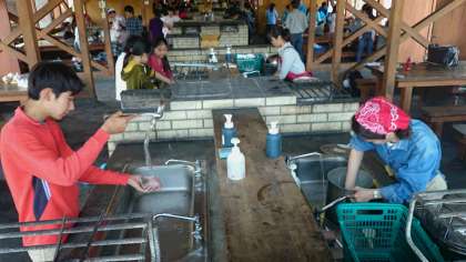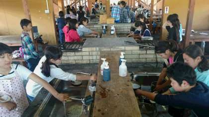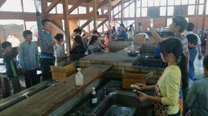 美味しく食べたあとはお片付けです。手際よくがんばっています。(副校長)