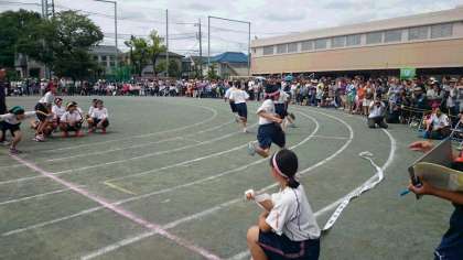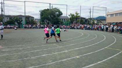 800メートル走、そして、2年生の100メートル走です。さらに盛り上がってきました。(副校長)