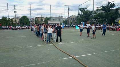 午後の最初の競技はPTA競技綱引きでした。校長先生もPTA会長もお父さんもお母さんもみんながんばりました。(副校長)