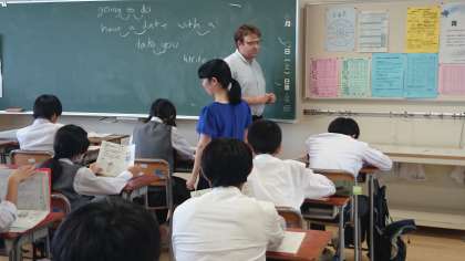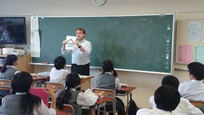 生徒たちも発音したり、聞き取ったり、意欲的にがんばっていました。(副校長)