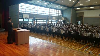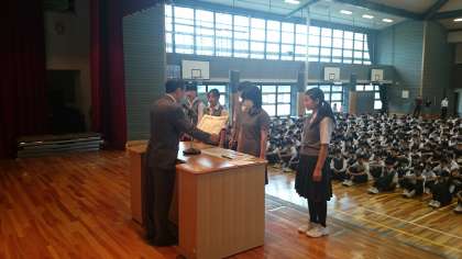 校長先生からは、「1学期は3年生を筆頭に全校生徒が意欲的にがんばってきた」というお話と「こらからも継続して、トイレ掃除をがんばっている人のように、目立たないけど、人にとって大切で、支えになるようなこともがんばってほしい」という話しがありました。(副校長)