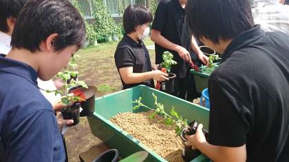 生徒たちは大切にしながら丁寧に植え替えていました。
