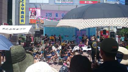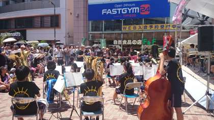 駅前の特設ステージに本校の吹奏楽部が出演しました。