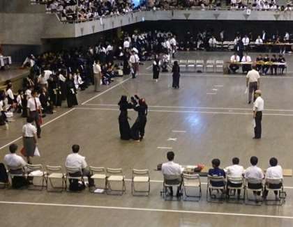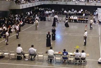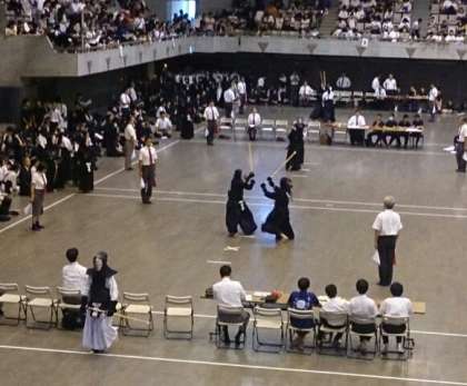東京都中学校剣道選手権大会が行われています。女子団体戦に出場し一回戦を突破しました。