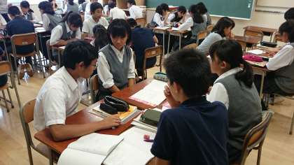 生徒たちも話し合いに慣れていて、全員が自分の考えを班員に伝え、グループで考えを共有し、まとめていました。
