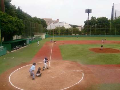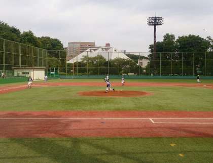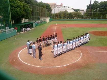 世田谷区中学校野球新人戦が世田谷区総合運動場で行われました。瀬田中学校に10対0のコールドゲームで勝ちました。