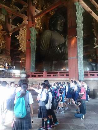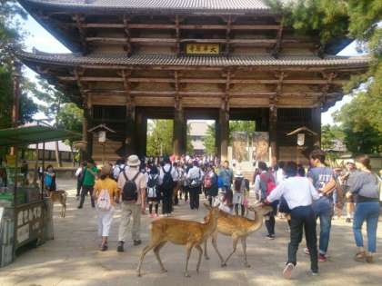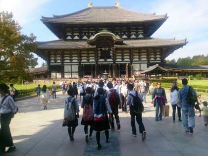 予定より30分早く、奈良公園に到着し、班毎に南大門、大仏殿、二月堂、春日大社等を見学しています。