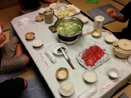 生徒達はしゃぶしゃぶで夕飯を食べていますが、ボリュームの多さに大満足の様子です。