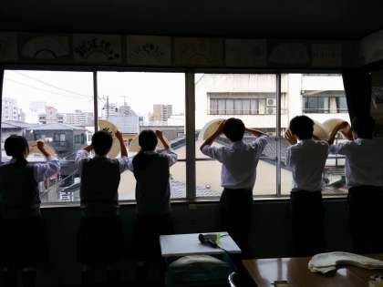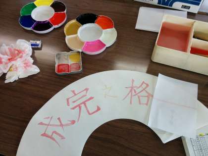 この絵の具、水分が多すぎるとにじみ、少なすぎると扇子がくっつきます。