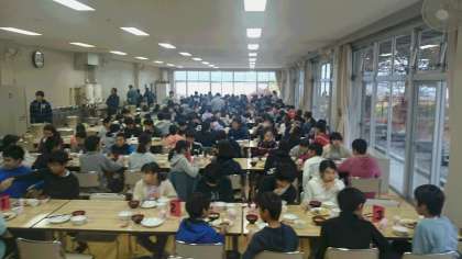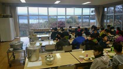 朝食を食べています。今日のオリエンテーリングの活力源になります。(副校長)