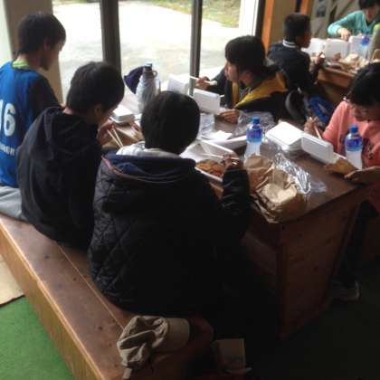 紅葉台ドライブインでお弁当を食べています。(副校長)