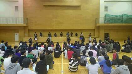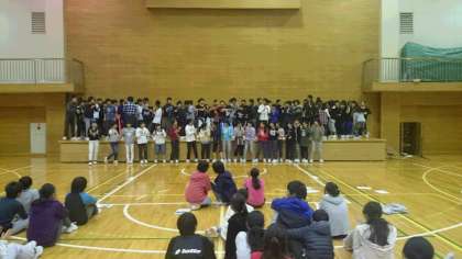 レクリエーション大会が終わりました。昼間のオリエンテーリングの表彰式も行いました。(副校長)