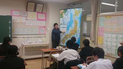 大きな地図や実物投影機を活用し、わかりやすく解説し、