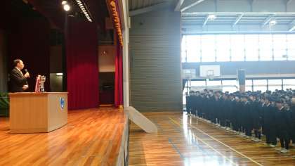 今日も朝礼開始2分前にはほぼ全校生徒が揃うという素晴らしい状況でした。(副校長)