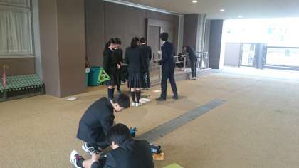 前回の授業で自分たちが考えた方法で計測できるか検証をしていました。