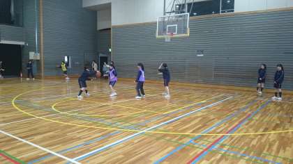 シュートが入りやすいのはどんなときかを自分たちで考え、話し合い、実際に意識して練習しました。