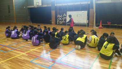 「ボールを持たないときの動きを考えよう」というめあてで授業を進めました。
