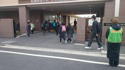 本日も寒い中、生徒たちの登校を見守ってくださいました。(副校長)