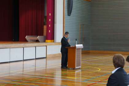 私は、4月1日に校長として着任した加藤敏久と申します。前職は区内の駒沢中学校の校長、その前は世田谷区教育委員会に勤めておりました。どうぞよろしくお願いいたします。