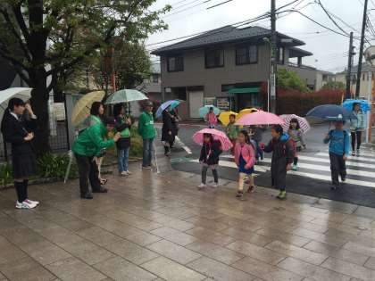 今朝も雨にもかかわらず、船橋希望学舎の地域では、