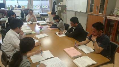 中堅の先生や主幹教諭の先生も参加し、一緒に勉強していました。(副校長)