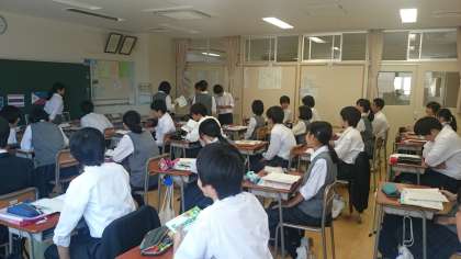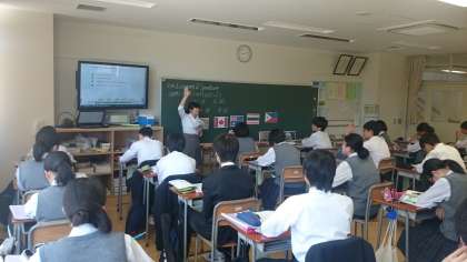 3年生の英語の授業では、飛行機の機内での会話を題材に、