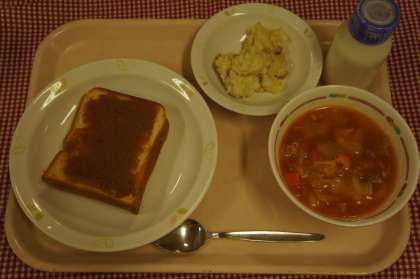 きな粉バタートースト ミネストローネ カルボナーラポテト
