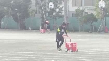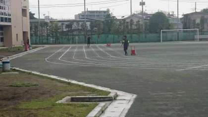 運動会の練習期間に入りました。保健体育の先生方は毎日、朝早くから学校へ来て、練習のための準備やけがなどがないようにグランド整備をしています。(副校長)