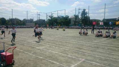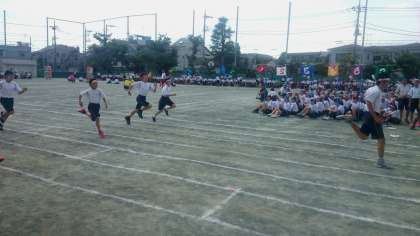 最初の競技が終わりました。1年生の100メートルでした。(副校長)
