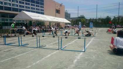 障害物競争はいかに上手に障害をクリアするかが勝負の鍵になります。(副校長)