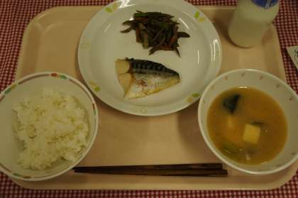 白飯 なめこの味噌汁 さばの塩焼き きんぴらごぼう