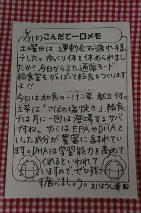 きんぴらごぼうも素朴な味がして美味しいですし、今日の給食はとても美味しくいただけました。