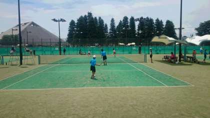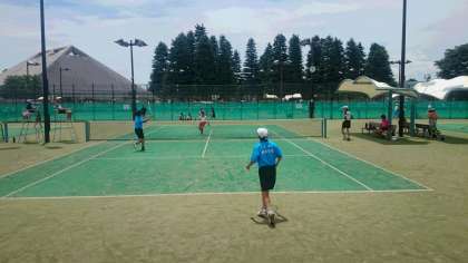 ソフトテニス部も夏季大会を行っています。女子は全ペア勝ち上がりました。男子も検討しています。(副校長)