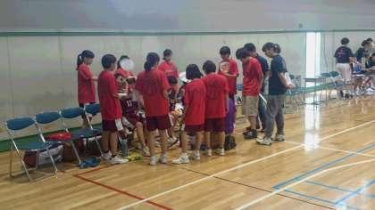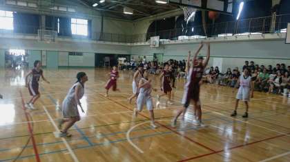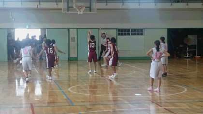 女子バスケットボール部も頑張っています。第3ピリオドが終わって、大きくリードしています。男子は2時40分試合開始予定です。(副校長)