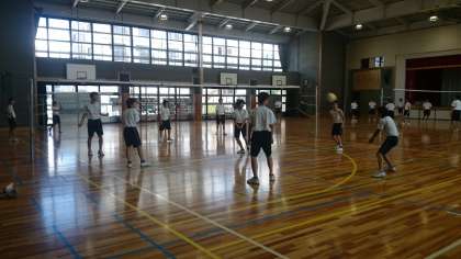 3年生の男子の体育の授業はバレーボールでした。